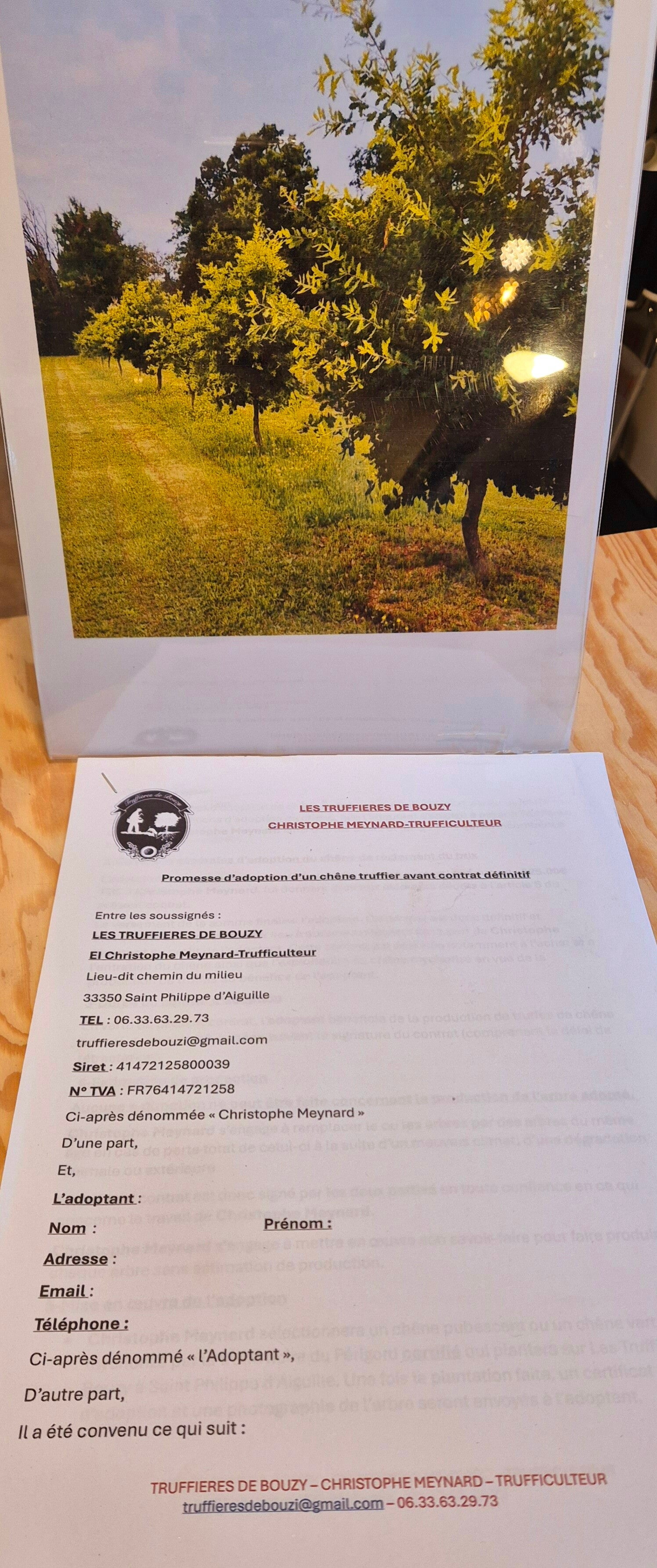 Nous avons mis en place une promesse d'adoption de chêne truffier avant contrat définitif sur notre propre truffière.